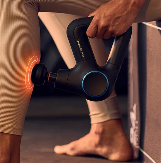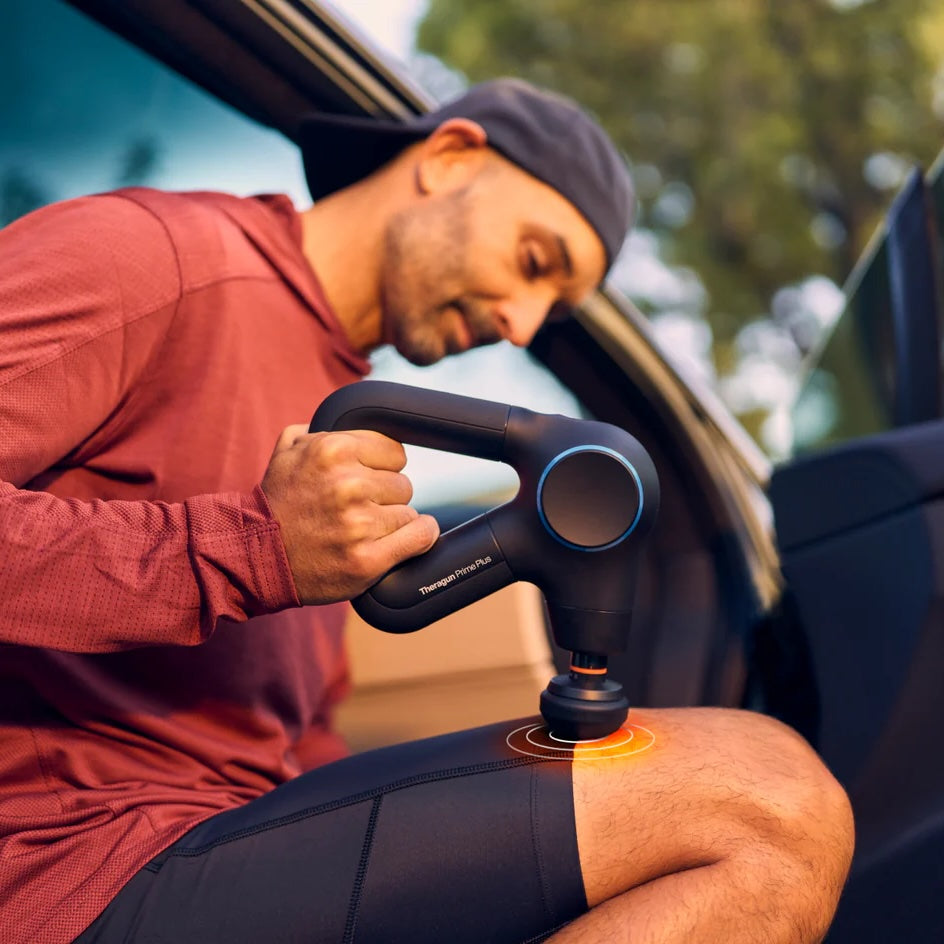 Theragun Prime Plus features a Heated Percussive Plus Attachment that combines heat and percussive message to help speed up recovery, optimize warm-ups and relieve soreness faster than standard percussive massage alone.
